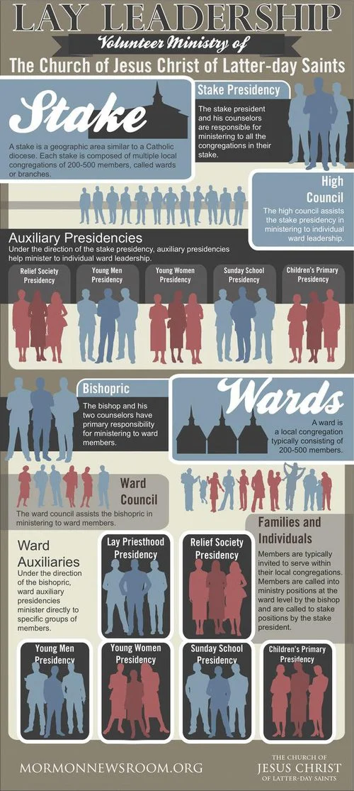 Congregations of The Church of Jesus Christ of Latter-day Saints are organized geographically and members attend worship services near their home. Each member belongs to a stake, which is similar to a Catholic diocese. The leader of a stake is called the stake president.
